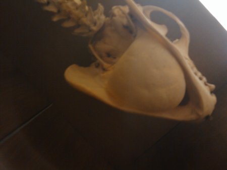 The robust mandible on this specimen hides the most characteristic feature of a howler monkey – the hugely enlarged hyoid bone in the throat: