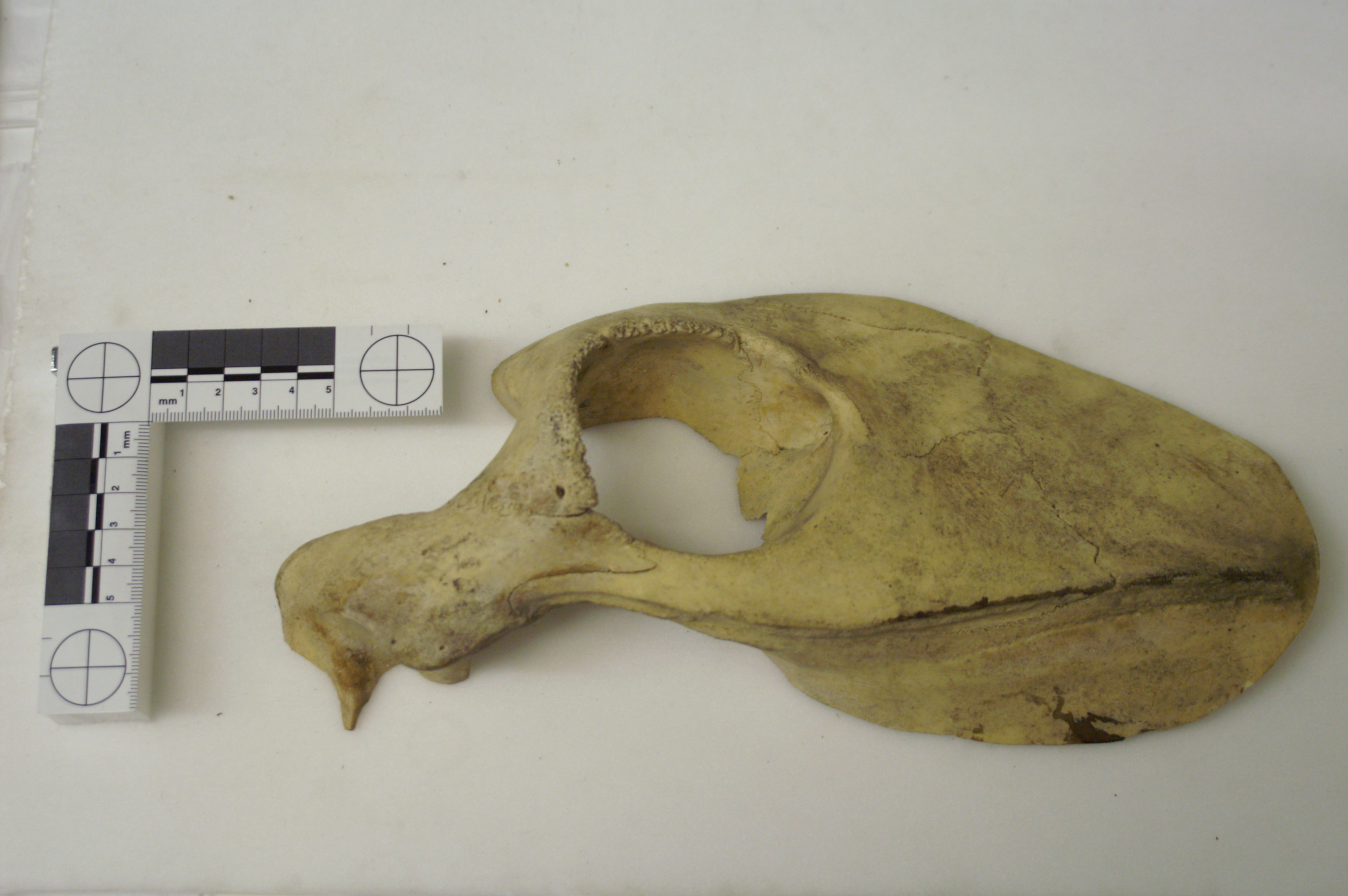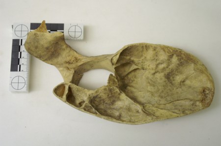 Hmm. I’m guessing that the reason no teeth have been lost is because there are no teeth in this part of the skull to lose. Did the animal originally have teeth?