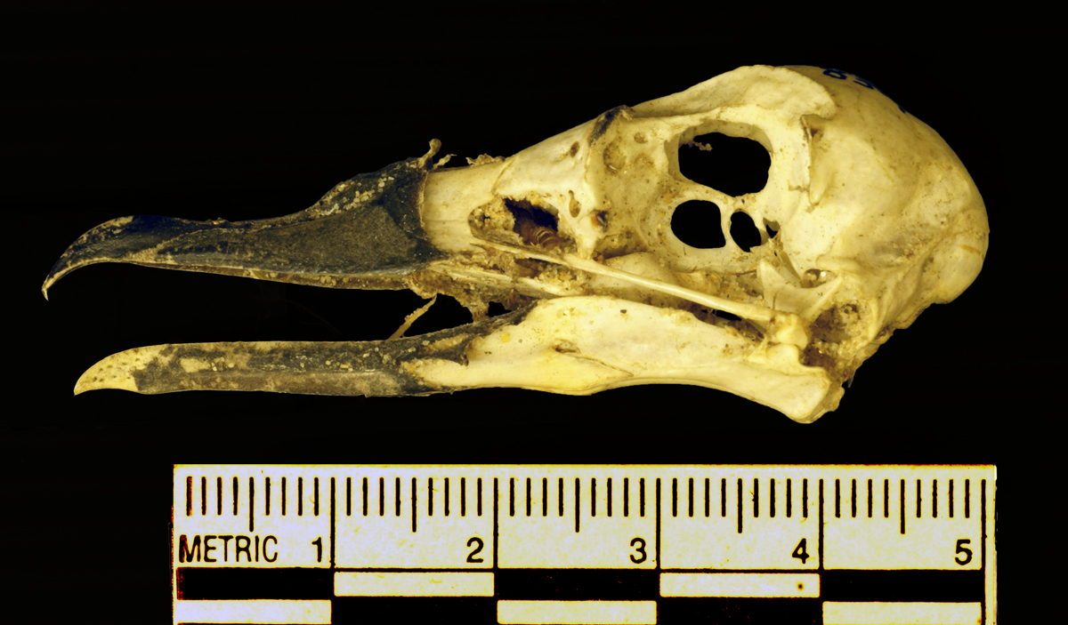 Lower mandible is quite slender, so that probably rules a few things out. I think the width of the beak is a bit smaller on storm-petrels; this thing has a very broad beak at the skull.