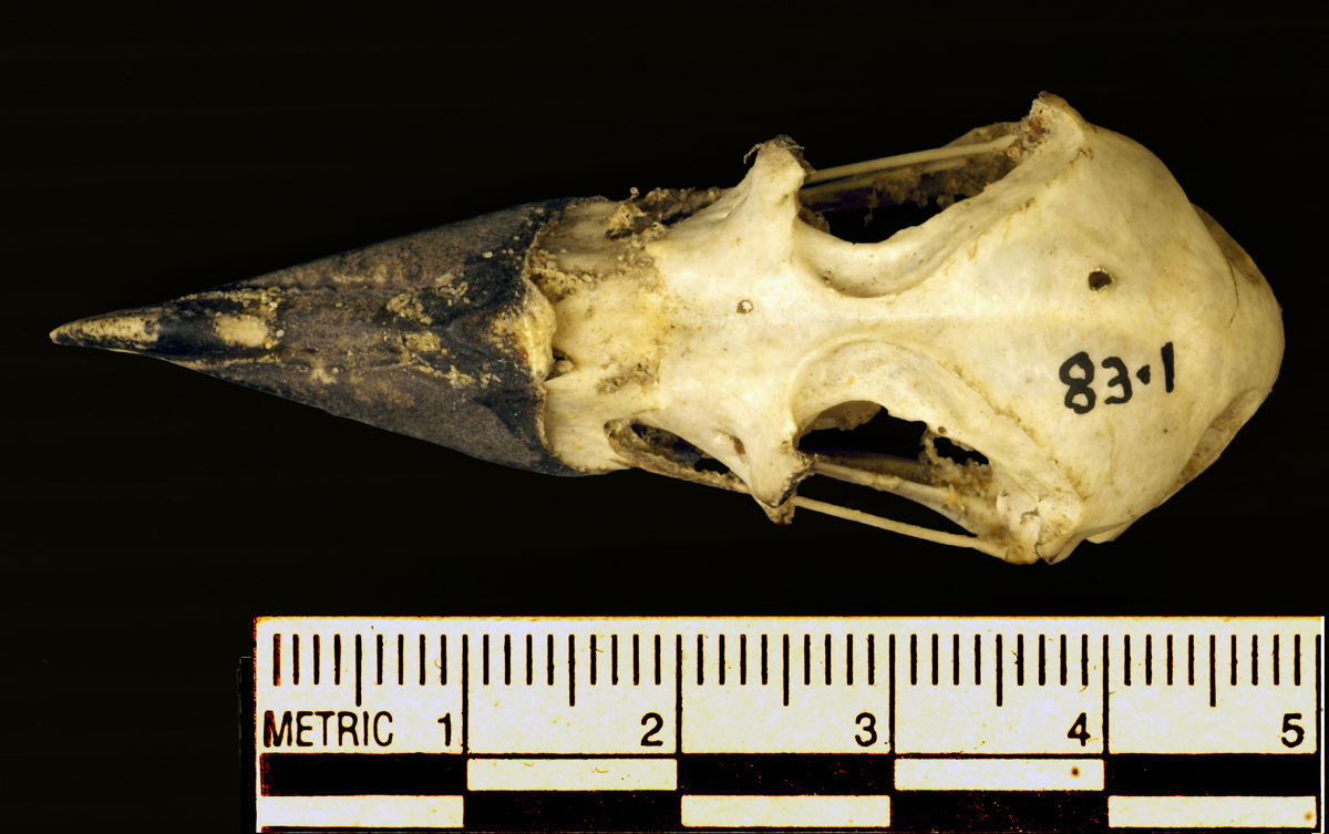 For now I will say that Steven D. Garber, PhD suggested that this was a petrel skull, probably for the reason posited by Cromercrox – it has a tube nose and is therefore from the Order Procellariiformes. David Craven noticed that the skull is too small for an albatross and the beak is too broad at the base to belong to a storm-petrel – both being excellent observations, but the concluding suggestion of something from the Pterodroma was slightly out – they’re a bit too big. A-M (via KateV) and Prancing Papio, FCD also went for species that are a bit too big, but Rachel managed to get something the right size and shape (and distribution working with SmallCasserole’s observation about the other specimens from the same collection). She suggested the Fairy Prion Pachyptila turtur (Kuhl, 1820).