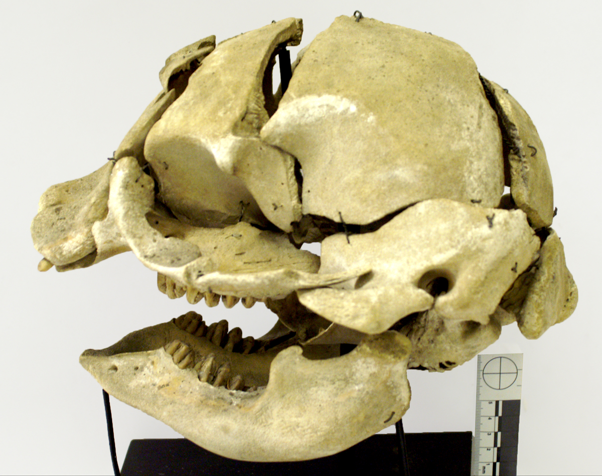 I think I know the second one. When I got a VIP tour at Perth Museum I took my baby brother and a bone expert called Catherine showed me on his head how the bones haven’t joined yet. So it’s big and it’s thick but it’s a baby. The jaw looks like an elephant jaw I saw in Dundee because it goes down a bit at the front. Here is a picture, it’s number 4.