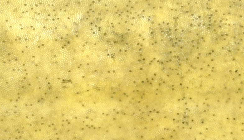 These rays are getting very rare due to fishing – both as accidental bycatch and for their fins, oil and their bizarre rostrum. They live in tropical waters and they feed by gliding over the sea bed and detecting the tiny electromagnetic signals given off by muscular contractions of fish and crustaceans, which they then cripple by threshing around with their ‘toothy’ saw to make them easy to catch. This ability to detect electromagnetic impulses is a sixth sense conferred by the Ampullae of Lorenzini, which are pores connected to canals full of a jelly that transmit electrical impulses from the surrounding water to electrosensitive nerves in the skin. This is what they look like on the surface of the skin: