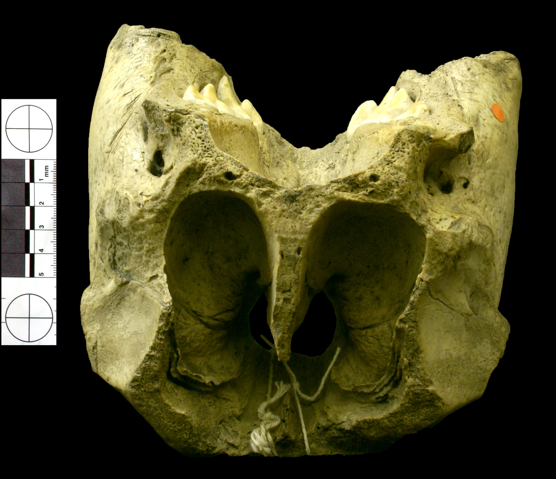Jake spotted that it was the nasal cavities and teeth (the premaxilla and part of the maxilla) of a marine mammal and Jonpaulkaiser identified that it belonged to a Walrus Odobenus rosmarus (Linnaeus, 1758). David Craven and Cromercrox dropped Beatles related hints to help anyone who was in doubt – for those of you too young to get those hints, here’s what the apparent nonsense relates to: