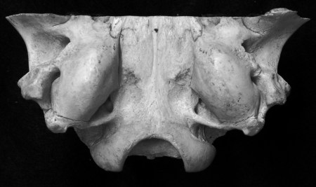 This is the back of the skull of a Leopard Panthera pardus (Linnaeus, 1758), in fact it is part of the same specimen as mandible F from last week.