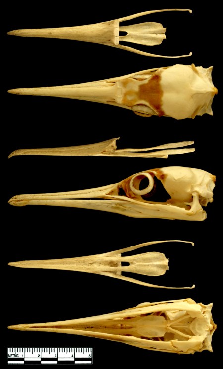 There are around 40 species of Cormorant, so getting this to species is a bit more tricky and a few possibilities were mooted. However, the two which best fit the shape and size of this bill are the Little Black Cormorant Phalacrocorax sulcirostris and the European Shag Phalacrocorax aristotelis. A quick comparison of the two on the excellent SkullSite.com (P. sulcirostris and P. aristotelis) show that the bill proportions and shape of the bony palate in the mystery specimen are closest to the European Shag Phalacrocorax aristotelis (Linnaeus, 1761). You can see the similarities very clearly in this comparison of the mystery specimen with the skull of the Shag: