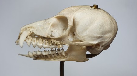 Hmmm… Looked up a couple of skull images on the WWW. This looks very much like a lemur I saw. On the other hand, it’s definitely NOT a Colugo (a.k.a. “Flying L”)– they seem to have much more herbivorous dentition, with what I’d call molariform premolars (though not premolars looking very much like their own molars).