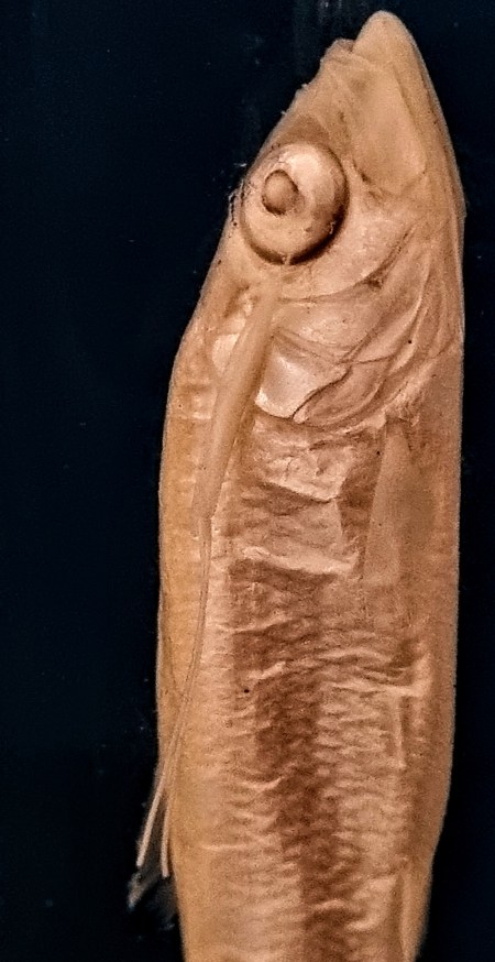 The European Sprat Sprattus sprattus (Linnaeus, 1758) was the obvious object in the image, but I was actually interested in the parasite attached to its eye: