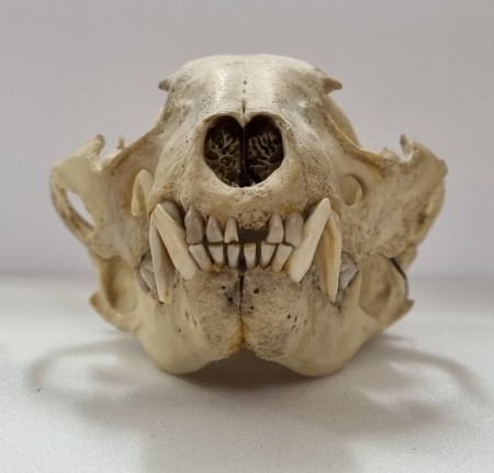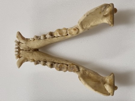This robustness in the mystery object changes the profile of the skull to some extent, making it more rounded on top and wider across the cheeks. The canines are also larger and the various suture lines are more fully fused, making it seem to be from a more formidable animal than a Raccoon – like a Wolverine or Honey-badger (both of which were suggested on Twitter).