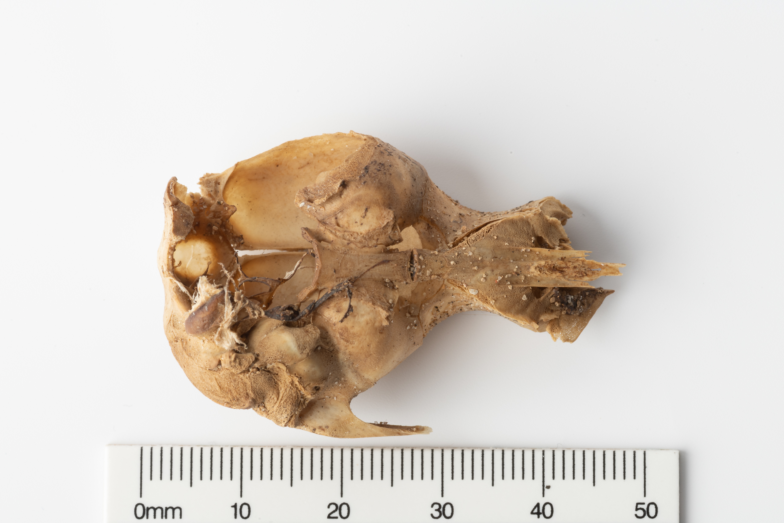 This is a skull from the Harry Brookes Allen Museum of Anatomy and Pathology at the University of Melbourne. Although the focus of our museum is on human anatomy, we have a significant comparative anatomy collection, which comprises hundreds of specimens of vertebrate animals – skeletal material, skulls, and potted specimens. Occasionally, I’ve encountered animal specimens that are very difficult to definitively ID, and this partial skull is one of them.