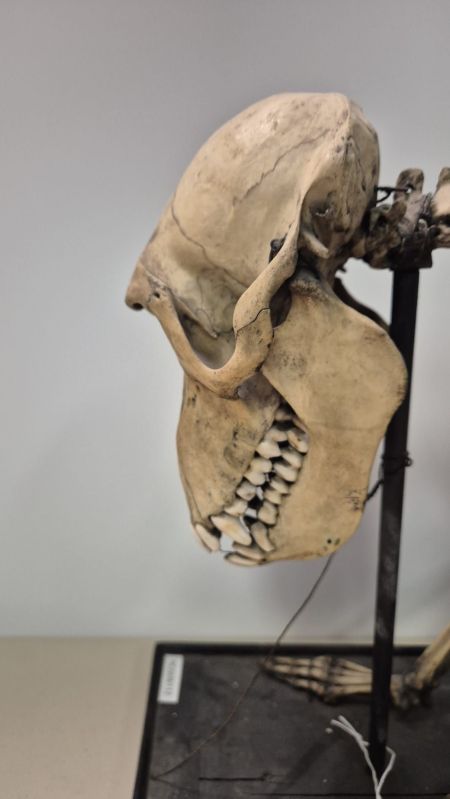 This is the skeleton of a species of spiny anteater – one of the four species of Echidna. The feet actually offer a further diagnostic clue to the species, since most species have five claws, while just one has three – the Three-toed or Western Long-beaked Echidna Zaglossus bruijnii (Peters & Doria, 1876).