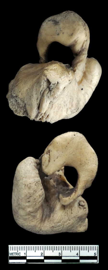 It’s something I tentatively identified a couple of weeks ago and thought you might be able to add your ideas, to make sure I wasn’t missing something. Jake was quick off the mark in suggesting it was the ear bone of a Whale, which is what I thought when I first saw it. This fitted with the large size and high density of the bone, but on closer inspection it doesn’t quite match any of the Whales.