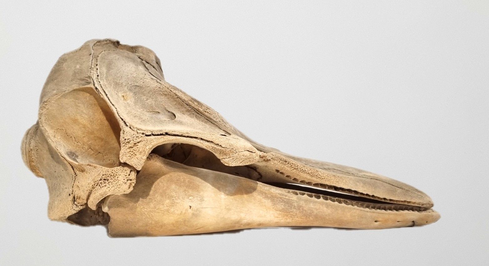It’s from a very distinctive type of animal, which pretty much everyone figured out, thanks to those huge bony crests on the front of the cranium (actually originating from the maxilla). In life, these would have almost enclosed the animal’s melon (a waxy ball that helps focus sound transmitted through water), helping to improve echolocation.