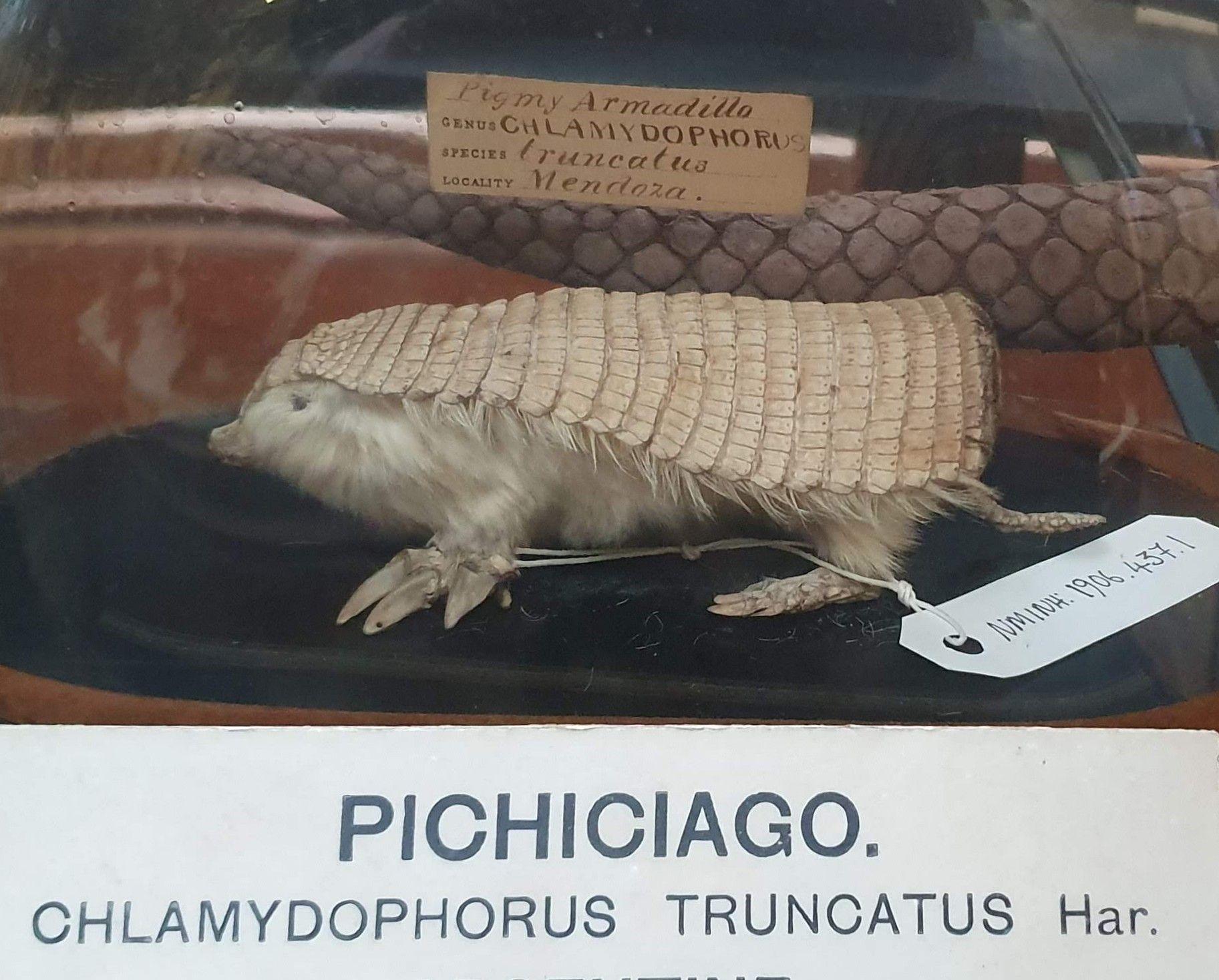 These tiny Argentinan armadillos are incredibly cute, with their silky fine hair and huge forefeet with massive claws (all the better for burrowing, my dear), although it’s a little hard to see that from the skeleton, so here’s this specimen’s skin: