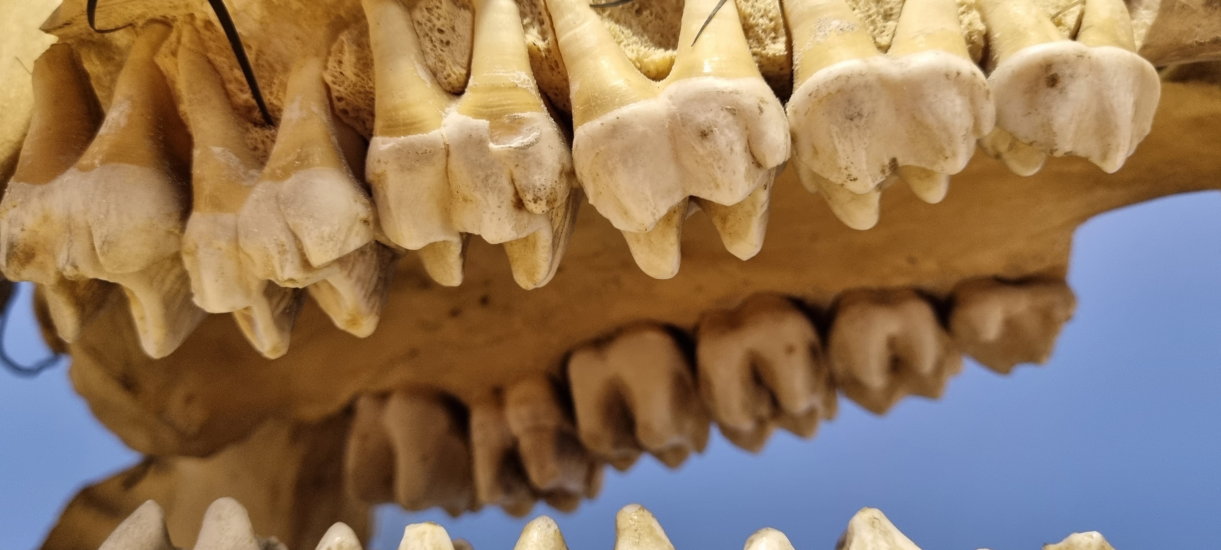 To start with, there are canines and incisors in the premaxilla (the top jaw). These are missing from things like cows, sheep and deer. So it’s not one of them. The premolars are adapted to grinding rather than cutting, so it’s not some kind of pig or carnivore.